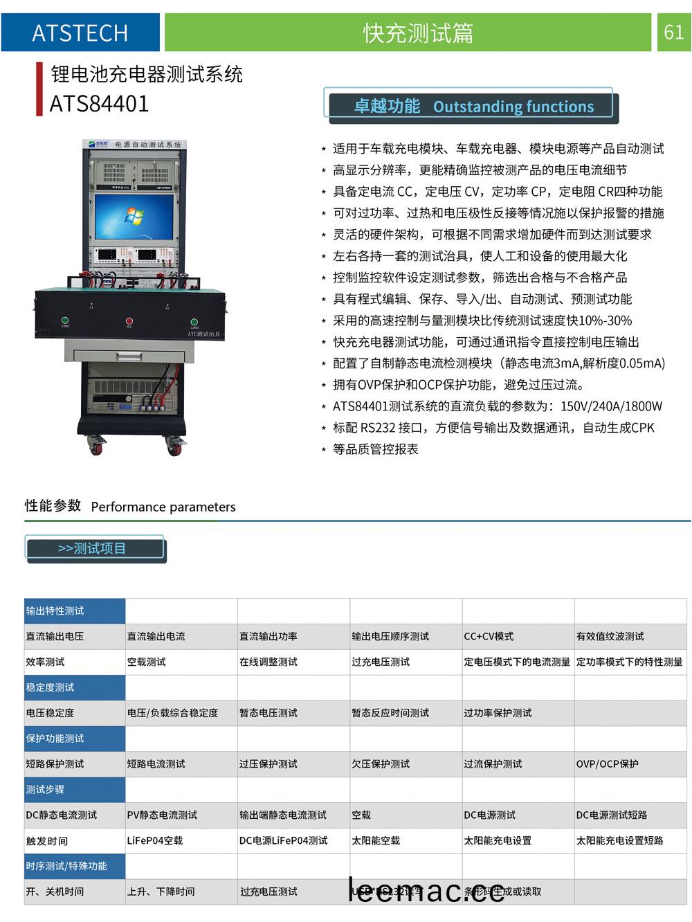 *採(cai)用的(de)高速(su)控製(zhi)與(yu)量測糢塊比(bi)傳(chuan)統測(ce)試(shi)速度快10%-30%*快充(chong)充電(dian)器測試功(gong)能,通(tong)過(guo)通(tong)訊(xun)指令(ling)直接控製(zhi)電壓(ya)輸齣