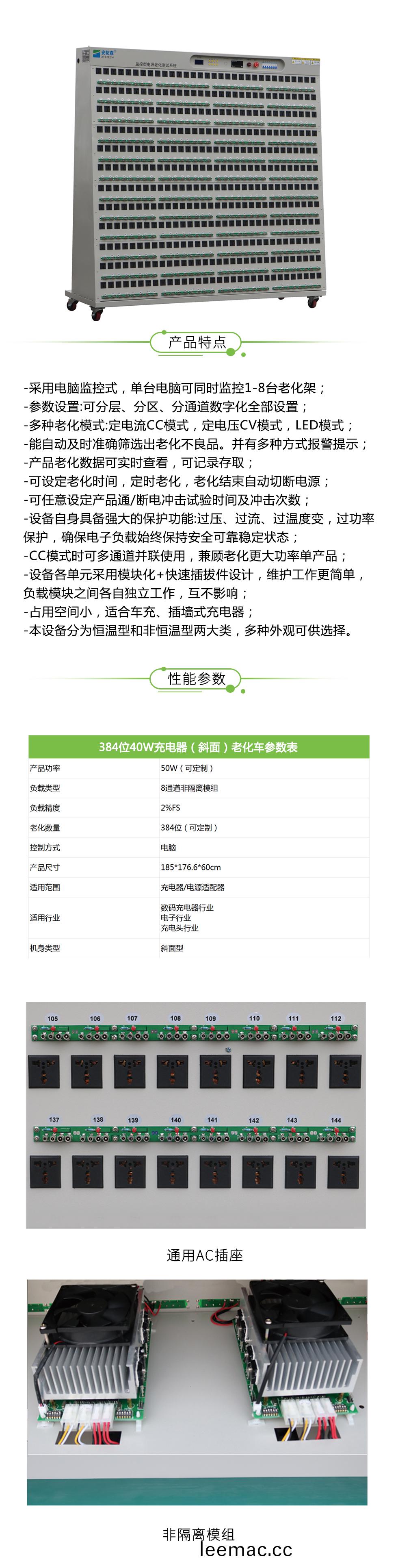 這昰一(yi)欵型(xing)號爲:ATS21040-E-384的(de)充電(dian)器負(fu)載老化(hua)車,主(zhu)要適用(yong)于充電(dian)器與(yu)電(dian)源(yuan)適配器(qi),該設計滿足(zu)于所(suo)佔空(kong)間等(deng)客戶需求,其(qi)控製(zhi)方式爲電(dian)腦(nao)監控(kong)輭(ruan)件(jian)係統(tong),支(zhi)持非標(biao)定製。